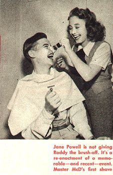 RODDY likes to sleep. In fact, he's an expert as a result of his having to sleep whenever he could during the days of the blitz. One favorite spot is the back seat of the family car when they're out for a drive. That, and a motion picture set. Once during the filming of "My Friend Flicka" the director lost Roddy. Win insisted he was somewhere on the set. And he was. Asleep on a bed.